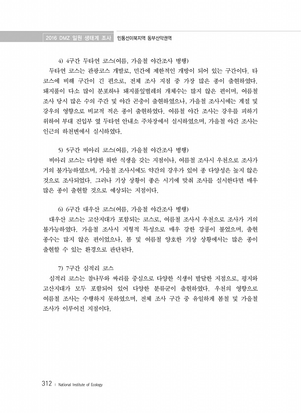 제목 : (2016) DMZ 일원 생태계 조사 : 민통선이북지역 동북산악권역