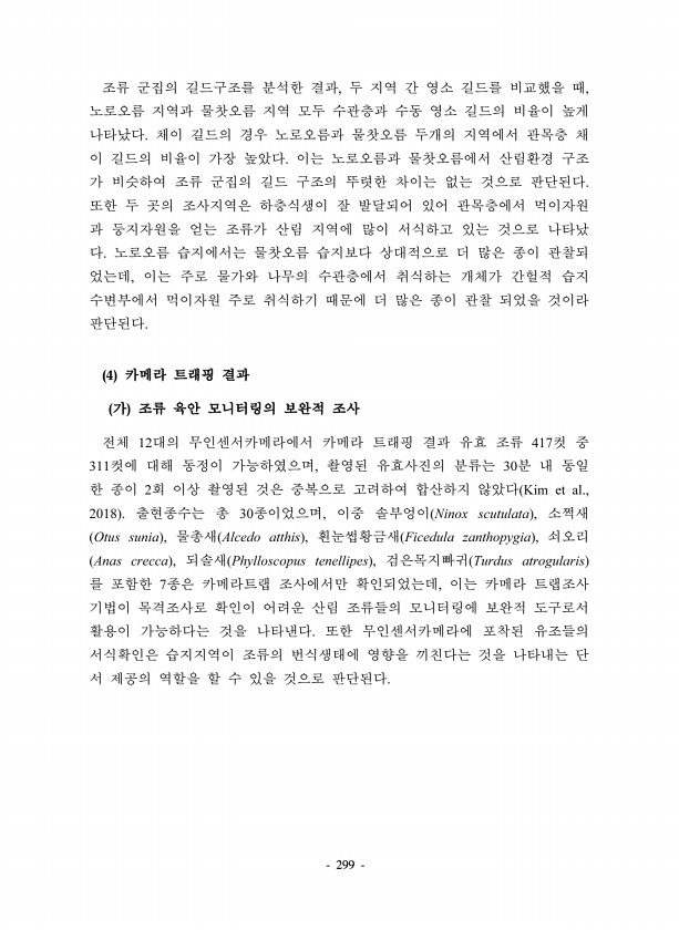 299 , , , 4 12 417 311 , 30 2 Kim et al., 2018 30 , Ninox scutulata , Otus sunia , Alcedo atthis , Ficedula zanthopygia , Anas crecca , Phylloscopus tenellipes , Turdus atrogularis 7 ,