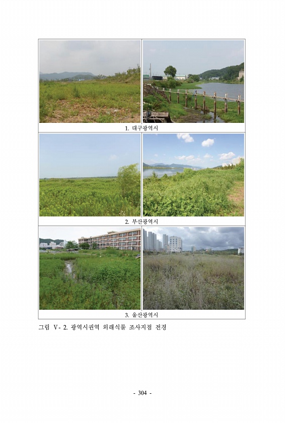 1. 대구광역시 2. 부산광역시 3. 울산광역시 그림 Ⅴ- 2. 광역시권역 외래식물 조사지점 전경 304