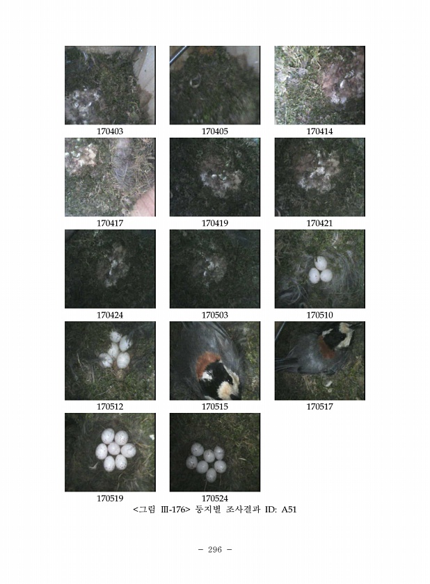 296 170403 170405 170414 170417 170419 170421 170424 170503 170510 170512 170515 170517 170519 170524 그림 Ⅲ-176 둥지별 조사결과 IDA51