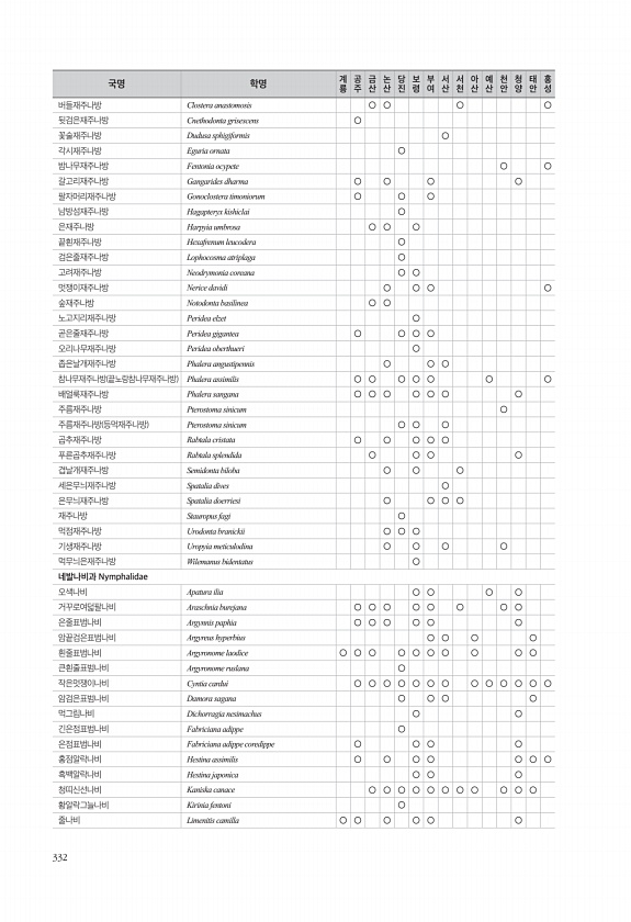 332 버들재주나방 Clostera anastomosis ○ ○ ○ ○ 뒷검은재주나방 Cnethodonta grisescens ○ 꽃술재주나방 Dudusa sphigiformis ○ 각시재주나방 Eguria ornata ○ 밤나무재주나방 Fentonia ocypete ○ ○ 갈고리재주나방 Gangarides dharma ○ ○ ○ ○ 팔자머리재주나방 Gonoclostera timoniorum ○ ○ ○ 남방섬재주나방 Hagapteryx kishiclai ○ 은재주나방 Harpyia umbrosa ○ ○ ○ 끝흰재주나방 Hexafrenum leucodera ○ 검은줄재주나방 Lophocosma atriplaga ○ 고려재주나방 Neodrymonia coreana ○ ○ 멋쟁이재주나방 Nerice davidi ...