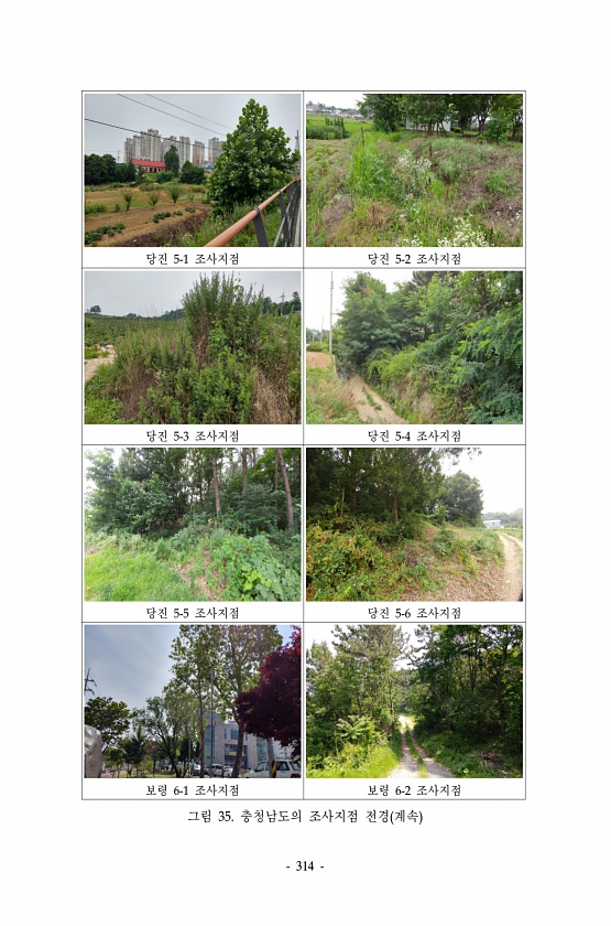 314 당진 5-1 조사지점 당진 5-2 조사지점 당진 5-3 조사지점 당진 5-4 조사지점 당진 5-5 조사지점 당진 5-6 조사지점 보령 6-1 조사지점 보령 6-2 조사지점 그림 35. 충청남도의 조사지점 전경 계속