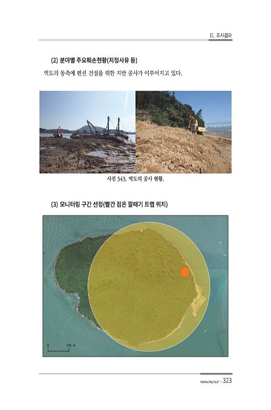 II. 조사결과 www.nie.re.kr ?323 2 역도의 동측에 펜션 건설을 위한 지반 공사가 이루어지고 있다. 사진 343. 역도의 공사 현황. 3