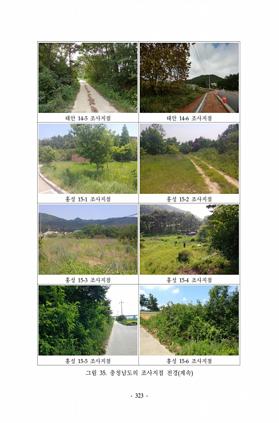 323 태안 14-5 조사지점 태안 14-6 조사지점 홍성 15-1 조사지점 홍성 15-2 조사지점 홍성 15-3 조사지점 홍성 15-4 조사지점 홍성 15-5 조사지점 홍성 15-6 조사지점 그림 35. 충청남도의 조사지점 전경 계속