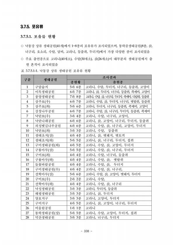 제목 : DMZ 일원 생태계 조사 : 민통선이북지역 중부산악권역