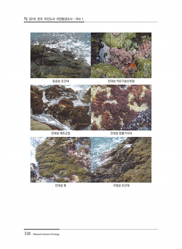 2018 전국 무인도서 자연환경조사 여수 1 338 ? National Institute of Ecology 둥글섬 조간대 진대섬 작은구슬산호말 진대섬 해조군집 진대섬 참풀가사리 진대섬 톳 구멍섬조간대