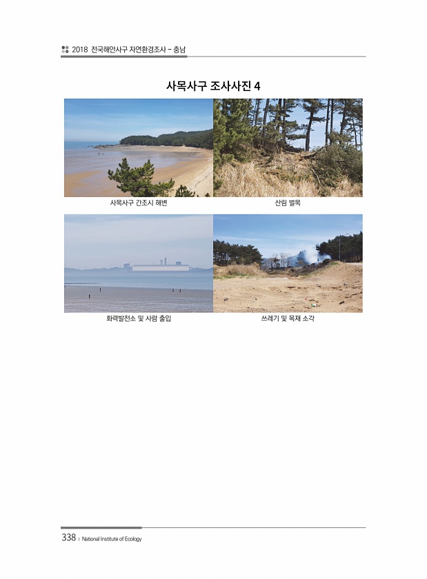 2018 전국해안사구 자연환경조사 충남 338 ? National Institute of Ecology 사목사구 간조시 해변 산림 벌목 화력발전소 및 사람 출입 쓰레기 및 목재 소각4