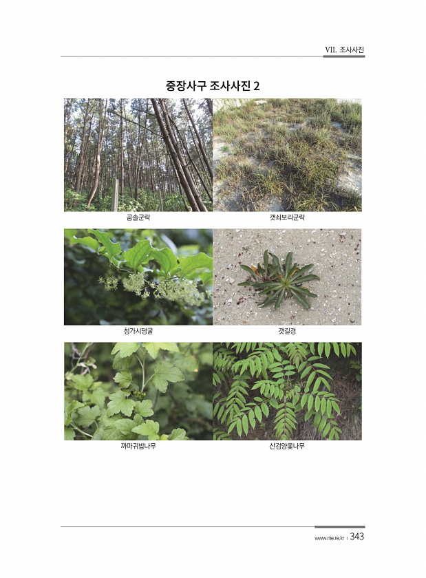 VII. 조사사진 www.nie.re.kr ?343 곰솔군락 갯쇠보리군락 청가시덩굴 갯길경 까마귀밥나무 산검양옻나무2