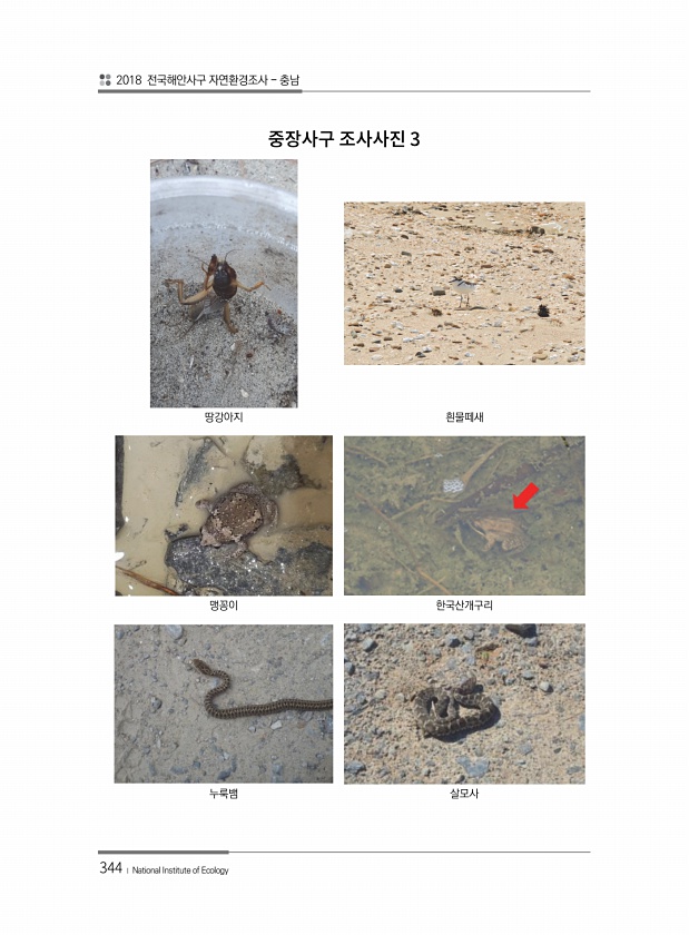 2018 전국해안사구 자연환경조사 충남 344 ? National Institute of Ecology 땅강아지 흰물떼새 맹꽁이 한국산개구리 누룩뱀 살모사3