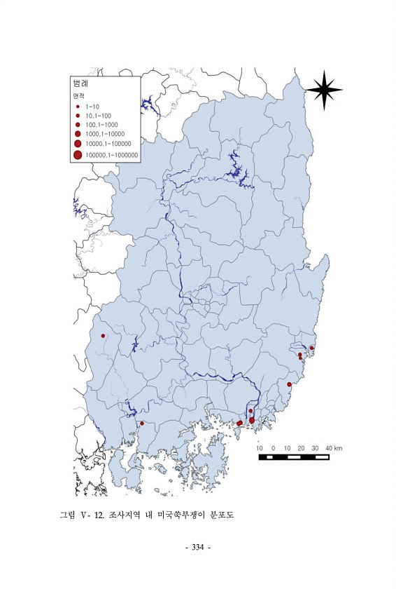 그림 Ⅴ- 12. 조사지역 내 미국쑥부쟁이 분포도 334