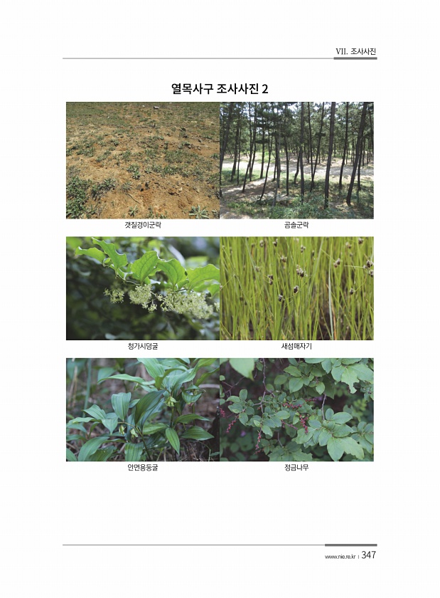 VII. 조사사진 www.nie.re.kr ?347 갯질경이군락 곰솔군락 청가시덩굴 새섬매자기 안면용둥굴 정금나무2