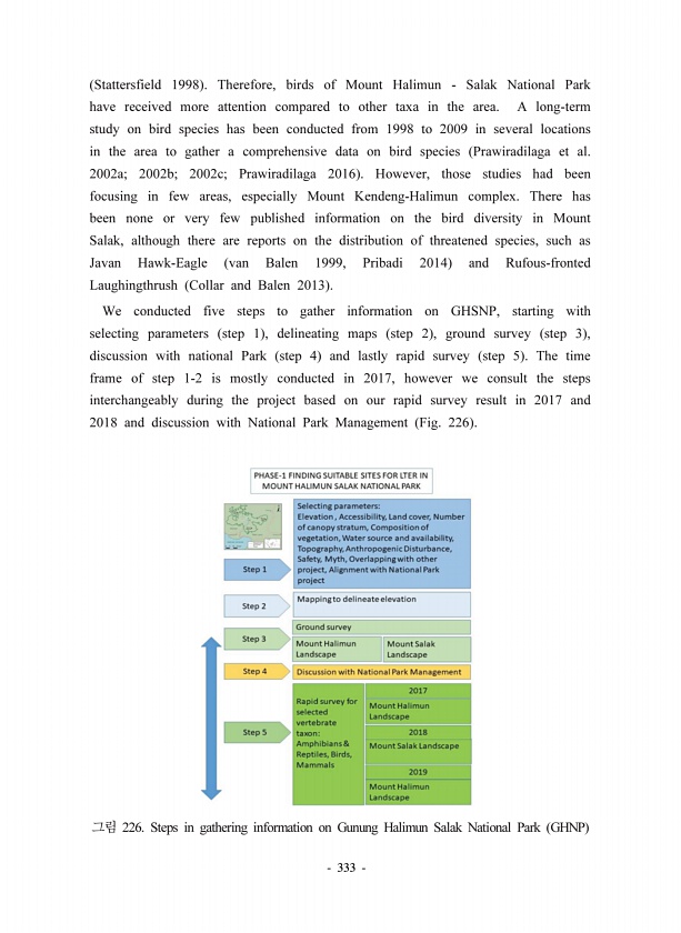 333 Stattersfield 1998 Therefore, birds of Mount Halimun Salak National Park have received more attention compared to other taxa in the area. A long-term study on bird species has been conducted from 1998 to 2009 in several locations in the area to gather a comprehensive data on bird species Prawiradilaga et al. 2002a; 2002b; 2002c; Prawiradilaga 2016 However, those studies had been focusing in fe...