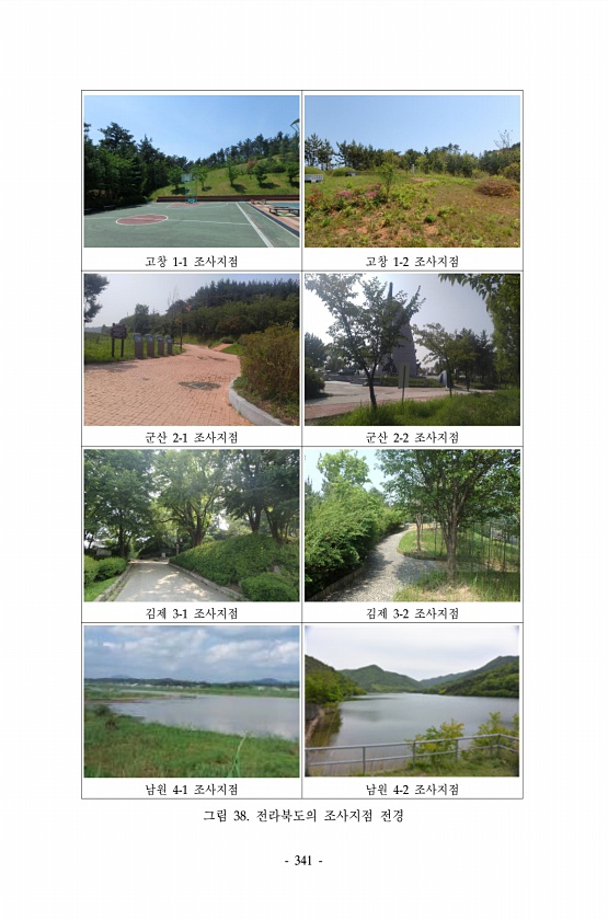 341 고창 1-1 조사지점 고창 1-2 조사지점 군산 2-1 조사지점 군산 2-2 조사지점 김제 3-1 조사지점 김제 3-2 조사지점 남원 4-1 조사지점 남원 4-2 조사지점 그림 38. 전라북도의 조사지점전경