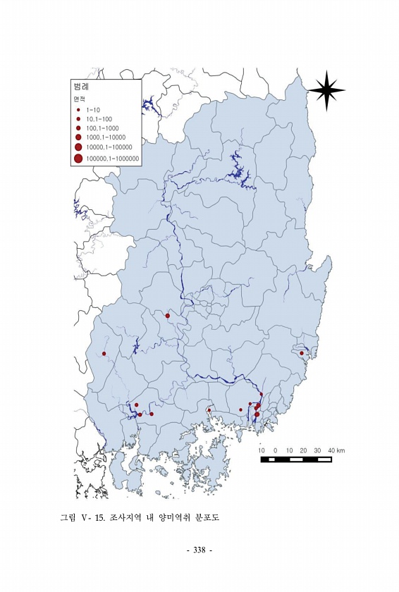 그림 Ⅴ- 15. 조사지역 내 양미역취 분포도 338