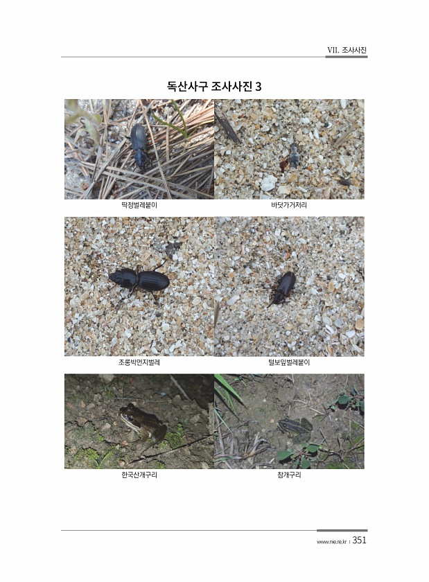 VII. 조사사진 www.nie.re.kr ?351 딱정벌레붙이 바닷가거저리 조롱박먼지벌레 털보잎벌레붙이 한국산개구리 참개구리3