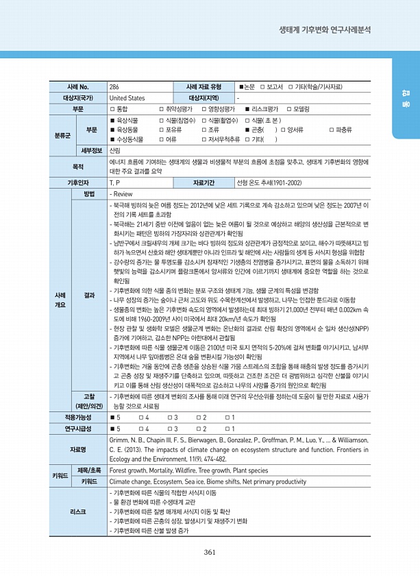 제목 : 생태계 기후변화 영향·취약성·리스크평가 : 연구사례분석