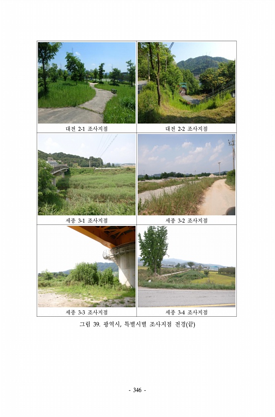 346 대전 2-1 조사지점 대전 2-2 조사지점 세종 3-1 조사지점 세종 3-2 조사지점 세종 3-3 조사지점 세종 3-4 조사지점 그림 39. 광역시, 특별시별 조사지점 전경 끝