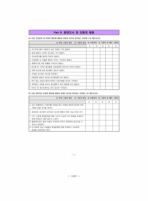 Ⅴ. 부록 www.nie.re.kr ? 359 지형조사상세표 조사지역 도엽명 15-노적도 도엽번호 격자번호-연번 01 지형명 기호 파식대 GC03 등급 평가 항목 등급 평가 기준 대표성 중 암석해안에서 나타나는 전형적인 파식대이나 형태상으로는 대표성이 미약함 희소성 중 완도권역에서 간간히 분포하는 지형 특이성 상 고파식대가 층리의 영향으로 계단상으로 발달하고 있음 재현불가능성 상 과거 환경에서 형성된 파식대가 융기된 것으로 재현이 불가함 학술?교육적 가치 상 암석해안에서 고파식대의 형성과정과 특징을 보여주는 사례 자연성 상 자연 상태를 잘 유지하고 있음 다양성 중 주변에 해식애가 있으나 다양성은 떨어짐 규모 하 고파식대의 크기는 13×7m로서, 규모가 작음 기타 항목 등 급 Ⅲ 파식대 자체의 규모는 작지만,...