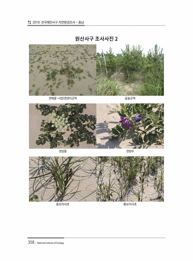 2018 전국해안사구 자연환경조사 충남 358 ? National Institute of Ecology 갯메꽃-서양갯냉이군락 곰솔군락 갯방풍 갯완두 좀보리사초 통보리사초2