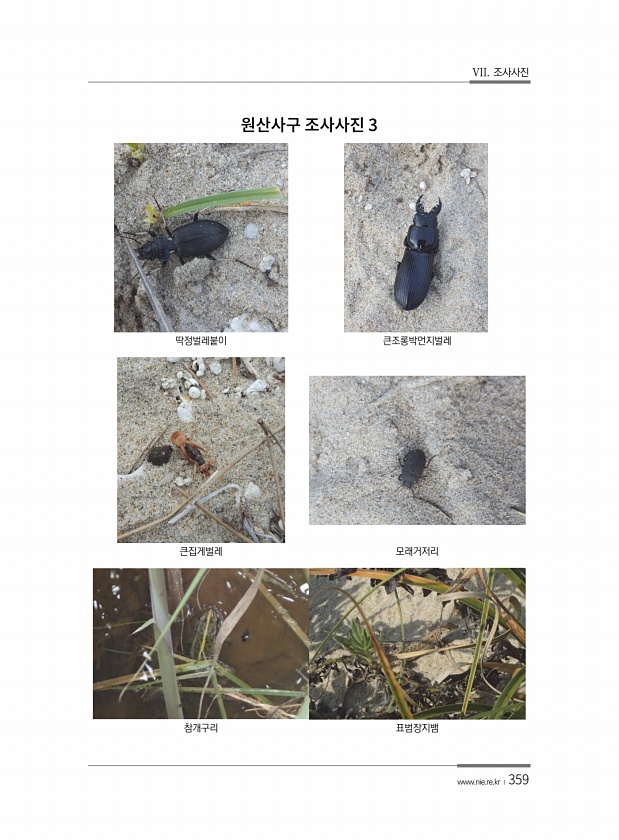 VII. 조사사진 www.nie.re.kr ?359 딱정벌레붙이 큰조롱박먼지벌레 큰집게벌레 모래거저리 참개구리 표범장지뱀3