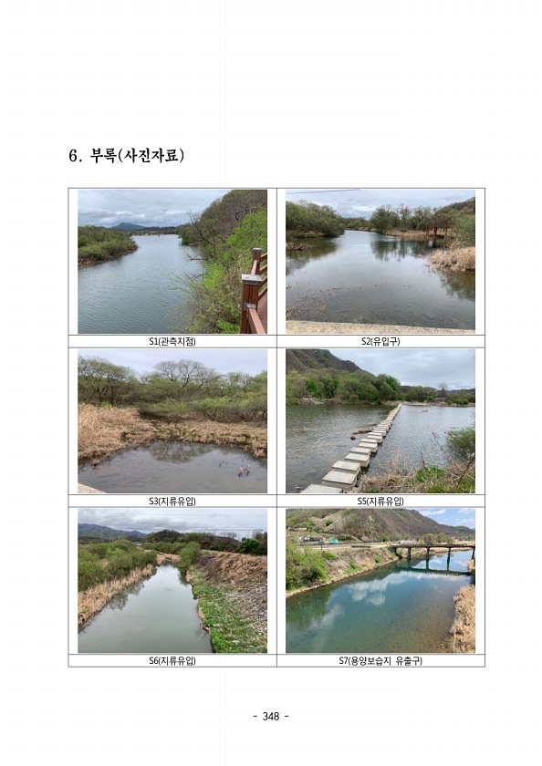 348 S1 관측지점 S2 유입구 S3 지류유입 S5 지류유입 S6 지류유입 S7 용양보습지 유출구