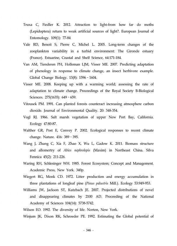 346 Truxa C, Fiedler K. 2012. Attraction to light-from how far do moths Lepidoptera return to weak artificial sources of light?. European Journal of Entomology. 109 1 77-84 Vale RD, Benoit S, Pierre C, Michel L. 2005. Long-term changes of the zooplankton variability in a turbid environmentThe Gironde estuary France Estuarine, Coastal and Shelf Science, 64171-184. Van AM, Tienderen PH, Holleman LJM...