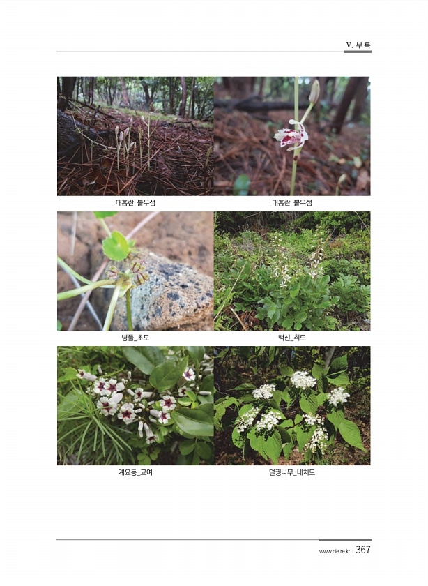 V. 부 록 www.nie.re.kr ?367 대흥란_볼무섬 대흥란_볼무섬 병풀_초도 백선_취도 계요등_고여덜꿩나무_내치도