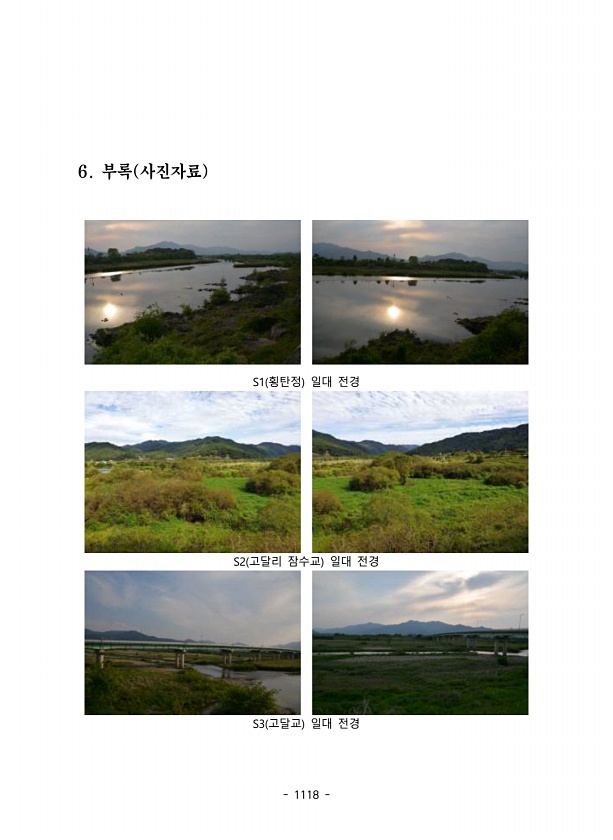 1118 6. 부록 사진자료 S1 횡탄정 일대 전경 S2 고달리 잠수교 일대 전경 S3 고달교 일대전경