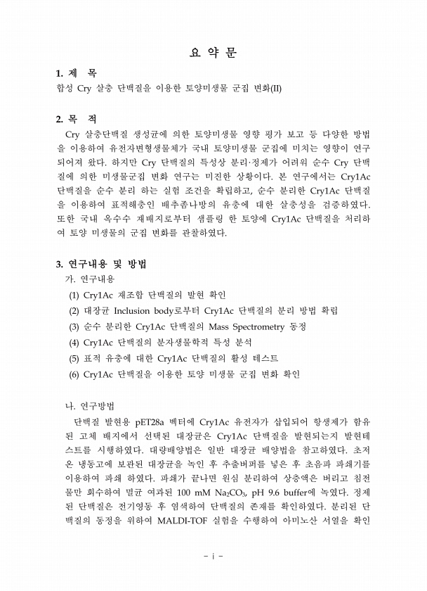 제목 : (2019) 자연생태계 내 유전자변형생물체 선별기술 개발