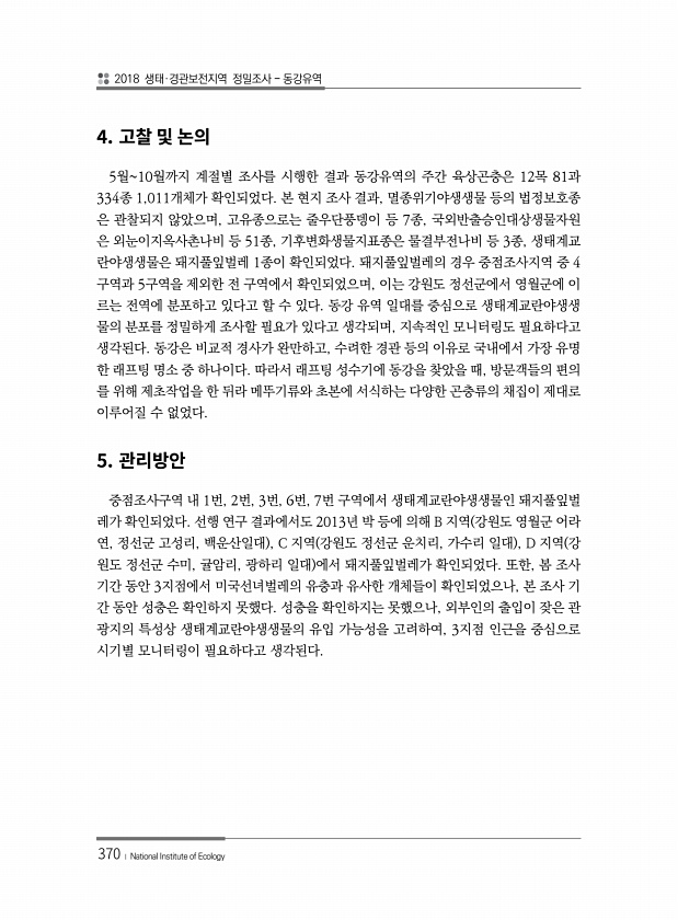 제목 : (2018) 생태·경관보전지역 정밀조사 : 동강 유역