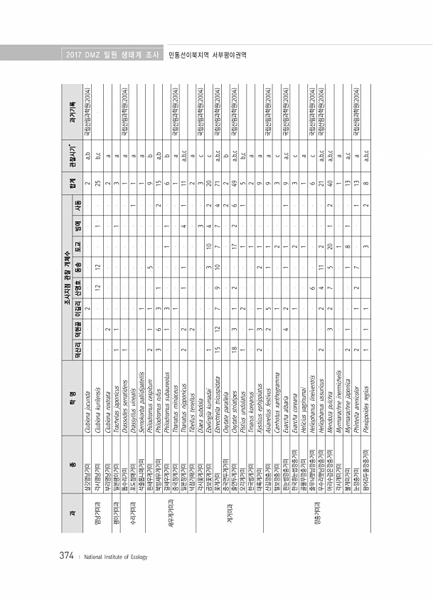 제목 : DMZ 일원 생태계 조사 : 민통선이북지역 서부평야권역