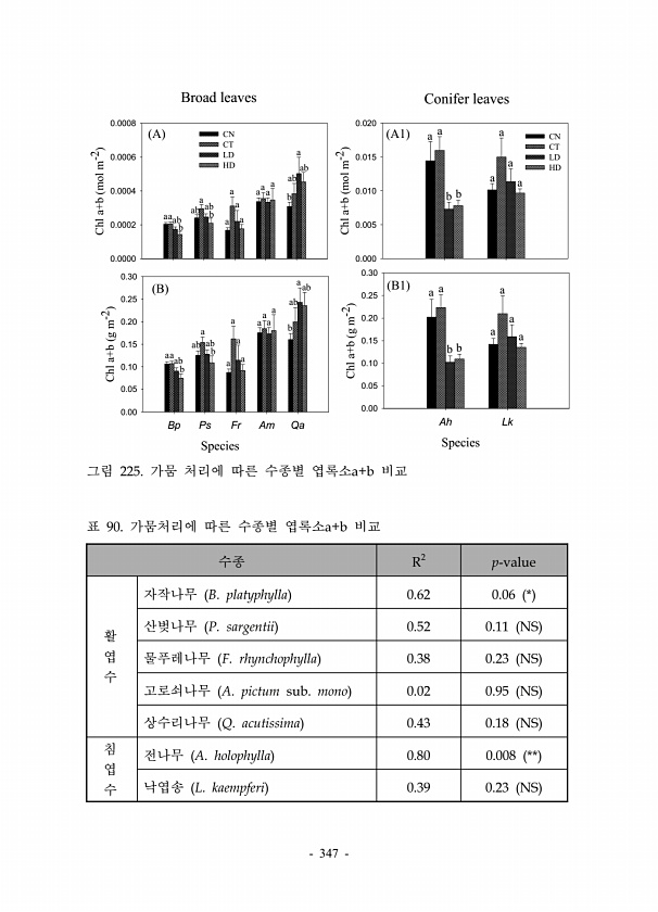 347 Chl a+b mol m-2 0.0000 0.0002 0.0004 0.0006 0.0008 CN CT LD HD Species Bp Ps Fr Am Qa Chl a+b g m-2 0.00 0.05 0.10 0.15 0.20 0.25 0.30 A B Chl a+b mol m-2 0.000 0.005 0.010 0.015 0.020 CN CT LD HD Species Ah Lk Chl a+b g m-2 0.00 0.05 0.10 0.15 0.20 0.25 0.30 A1 B1 Broad leaves Conifer leaves aaab b ab a ab b a a a a a a a a b ab a ab a a b b a a a a a a b b a a a a aa ab b ab a ab b a a a a a...