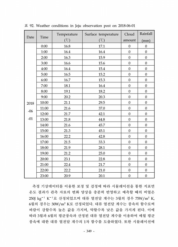 349 Date Time Temperature ℃ Surface temperature ℃ Cloud amount Rainfall mm 2018 -06 -01 000 16.8 17.1 0 0 100 16.4 16.4 0 0 200 16.3 15.9 0 0 300 16.6 15.6 0 0 400 16.4 15.4 0 0 500 16.5 15.2 0 0 600 16.7 15.3 0 0 700 18.1 16.4 0 0 800 19.1 18.2 0 0 900 20.2 20.3 0 0 1000 21.1 29.5 0 0 1100 21.6 37.0 0 0 1200 21.7 42.1 0 0 1300 21.8 44.8 0 0 1400 21.6 45.7 0 0 1500 21.3 45.1 0 0 1600 22.2 42.8 0 0...