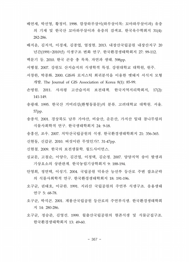 제목 : 백두대간보호지역 생태계 조사.묘적재~화방재