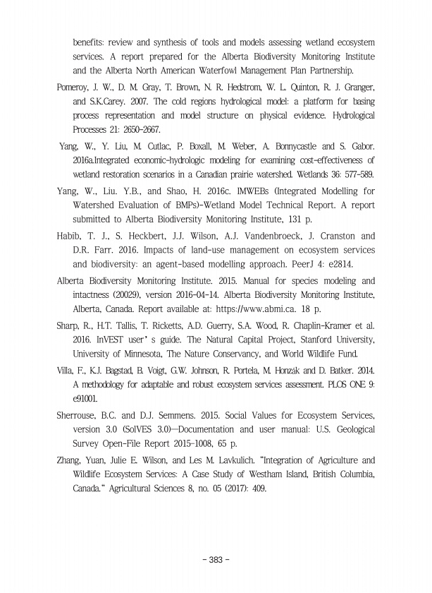 benefitsreview and synthesis of tools and models assessing wetland ecosystem services. A report prepared for the Alberta Biodiversity Monitoring Institute and the Alberta North American Waterfowl Management Plan Partnership. Pomeroy, J. W., D. M. Gray, T. Brown, N. R. Hedstrom, W. L. Quinton, R. J. Granger, and S.K.Carey. 2007. The cold regions hydrological modela platform for basing process repre...