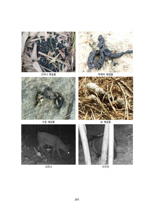 391 고라니 배설물 족제비 배설물 수달 배설물 삵 배설물 고라니너구리