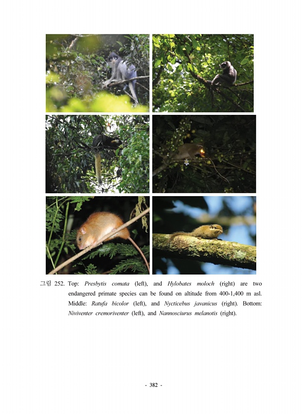 382 252. TopPresbytis comata left , and Hylobates moloch right are two endangered primate species can be found on altitude from 400-1,400 m asl. MiddleRatufa bicolor left , and Nycticebus javanicus right BottomNiviventer cremoriventer left , and Nannosciurus melanotis right