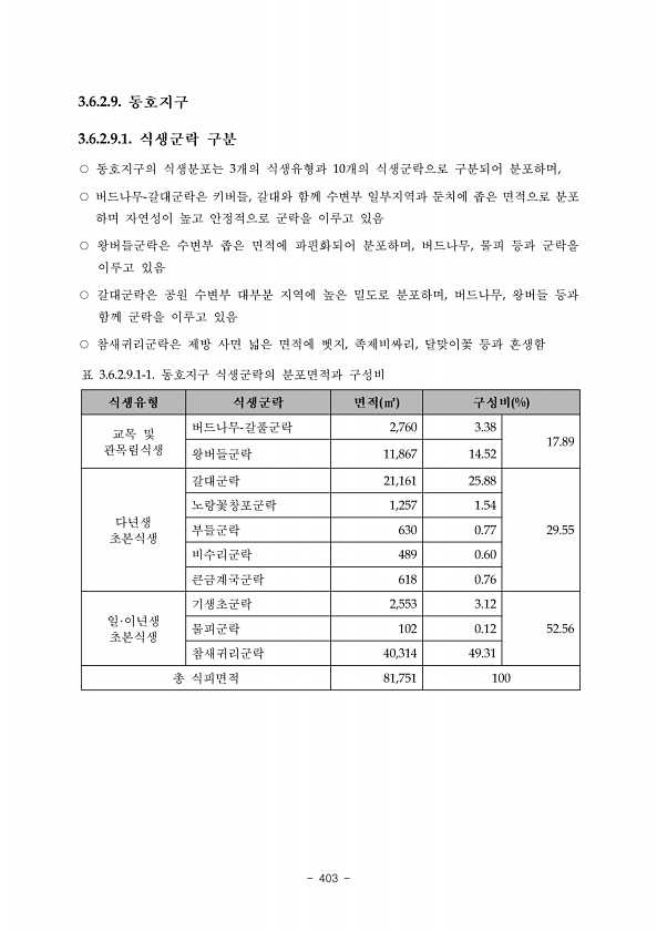 2017 DMZ 일원 생태계 조사 민통선이북지역 서부평야권역 400 ? National Institute of Ecology 지형조사상세표 조사지역 권역명 17-서부평야권역 구분 민통선이북지역 코스명 연번 덕현골코스 04 지형명 기호 둠벙습지 GS50 평가 항목 세부 평가항목 평가방법 평가점수 평가근거 비 고 대표성 지역 대표성 3 연천군 중면 도연리에 발달한 둠벙습지로 대표성이 높은 지형이다. 전형성 3 경작지에 농업용수를 공급하기 위해 축조된 둠벙에 형성된 습지이다. 희소성 분포빈도 1 전국적으로 관찰되는 지형이다. 분포패턴 1 농업용수가 부족한 지역에서 주로 나타나고 있다. 특이성 특이성 2 농업용수 공급을 위해 축조된 둠벙에 퇴적물이 퇴적되면서 수심이 낮아진 후 식생 이 천이되어 형성되었다. 재현불 ...