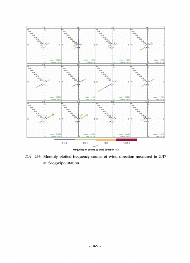365 그림 236. Monthly plotted frequency counts of wind direction measured in 2017 at Seogwipostation