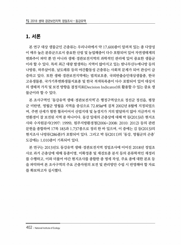 제목 : (2018) 생태·경관보전지역 정밀조사 : 동강 유역