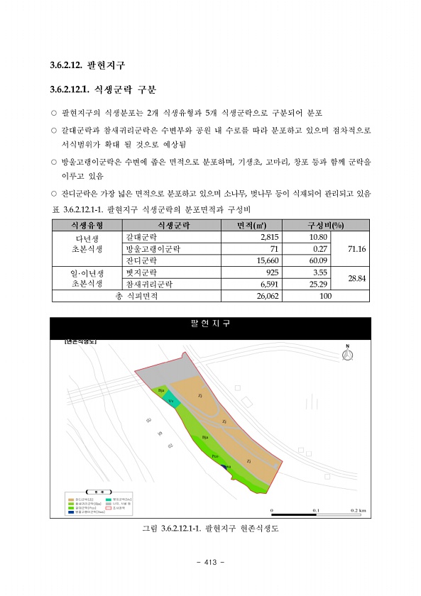 1159 금번 조사에서 확인된 식물구계학적 특정종 중 식재된 분류군을 제외할 경우 I등급에 해 당하는 왕버들 Salix chaenomeloides 이 침실습지 전역에서 가장 흔하게 분포하였다. 다음 으로 I등급의 새박 Melothria japonica , 뚜껑덩굴 Actinostemma lobatum , 수리딸기 Rubus corchorifolius , 돌동부 Vigna vexillata var. tsusimensis 등이 흔하게 출현하였다 표 4 III 등급의 구슬사초, II등급의 돌뽕나무, I등급의 개구리발톱, 자주괴불주머니 Corydalis incisa , 개서어나무 Carpinus tschonoskii , 털마삭줄 Trachelospermum jasmoides var. pubescens 등 은 침실습...