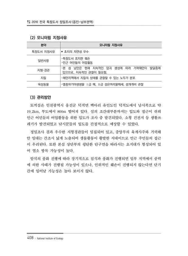 제목 : (2016) 특정도서 정밀조사 : 옹진-남부권역