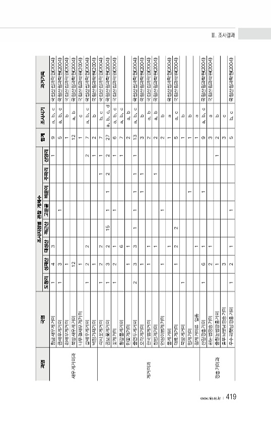 www ·nie·re·kr ? 419 과명 국명 조사지점별 관찰 개체수 합계 조사시기 과거기록 도창리 성재산 대성산 적근산 고둔골 비운이 주파리 산양리 새우게거미과 황금새우게거미 1 4 3 1 9 a, b, c 국립산립과학원 2004 금새우게거미 1 3 1 5 a, b, c 국립산립과학원 2004 흰새우게거미 1 1 b 국립산립과학원 2004 북방새우게거미 12 12 a, b 국립산립과학원 2004 나무결새우게거미 1 1 c 국립산립과학원 2004 갈새우게거미 1 2 2 2 7 a, b, c 국립산립과학원 2004 넉점가재거미 1 1 2 b 국립산립과학원 2004 게거미과 각시꽃게거미 1 2 2 1 1 7 b, c 국립산립과학원 2004 곰보꽃게거미 1 3 2 15 1 1 2 2 27 a, b, c, d 국...