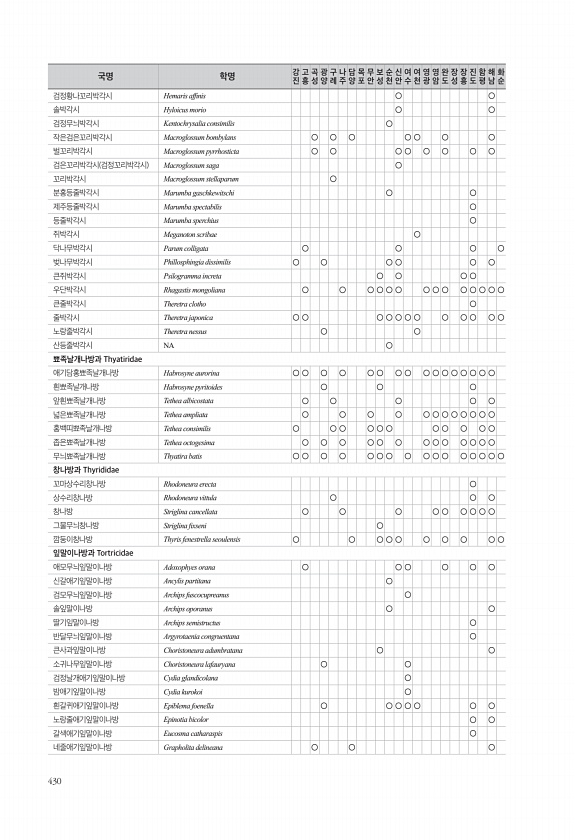 430 검정황나꼬리박각시 Hemaris affnis ○ ○ 솔박각시 Hyloicus morio ○ ○ 검정무늬박각시 Kentochrysalia consimilis ○ 작은검은꼬리박각시 Macroglossum bombylans ○ ○ ○ ○ ○ ○ ○ 벌꼬리박각시 Macroglossum pyrrhosticta ○ ○ ○ ○ ○ ○ ○ ○ 검은꼬리박각시 검정꼬리박각시 Macroglossum saga ○ 꼬리박각시 Macroglossum stellaparum ○ 분홍등줄박각시 Marumba gaschkewitschi ○ ○ 제주등줄박각시 Marumba spectabilis ○ 등줄박각시 Marumba sperchius ○ 쥐박각시 Meganoton scribae ○ 닥나무박각시 Parum colligata ○ ○...