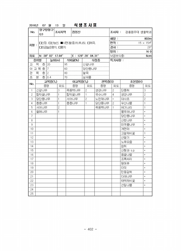 제목 : 생태계 기후변화 조사 연구