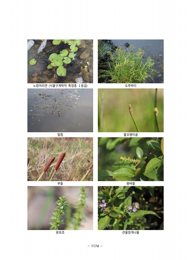 1174 노랑어리연 식물구계학적 특정종 Ⅰ등급 도루박이 말즘 물꼬챙이골 부들 왕버들 문모초큰물칭개나물