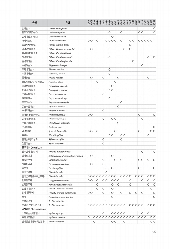 439 엿하늘소 Obrium obscuripenne ○ 알통다리꽃하늘소 Oedecnema gebleri ○ ○ ○ ○ ○ 점박이염소하늘소 Olenecamptus clarus ○ 국화하늘소 Phytoecia rufventris ○ ○ ○ ○ ○ ○ ○ ○ ○ ○ ○ ○ ○ ○ ○ 노랑각시하늘소 Pidonia Mumon debilis ○ 넉점각시하늘소 Pidonia Omphalodera puziloi ○ ○ ○ ○ 홍가슴각시하늘소 Pidonia Pidonia alticollis ○ 산각시하늘소 Pidonia Pidonia amurensis ○ ○ ○ 줄각시하늘소 Pidonia Pidonia gibbicolis ○ 소범하늘소 Plagionotus christophi ○ 두꺼비하늘소 Plectrura metalli...