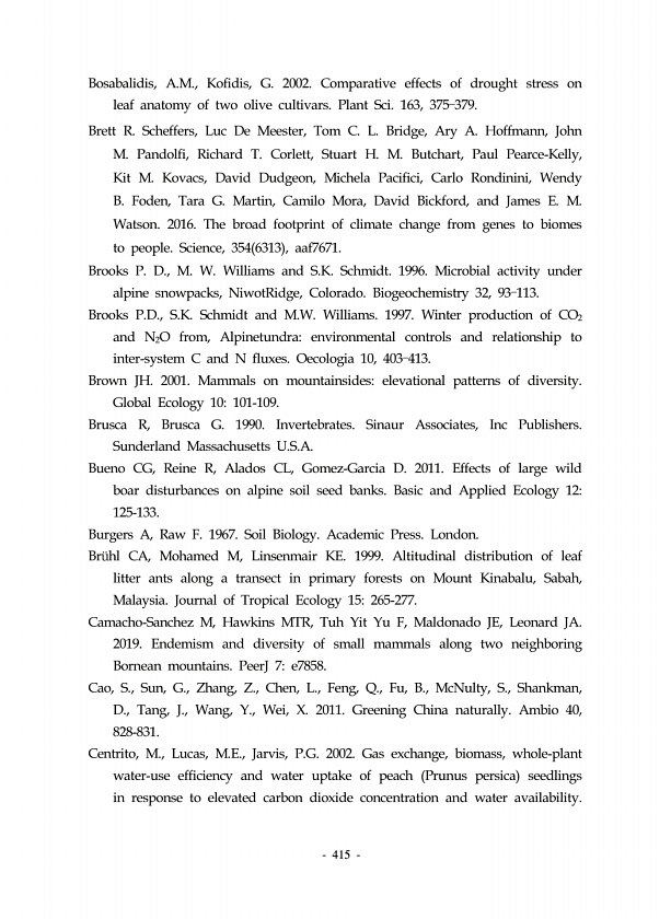 415 Bosabalidis, A.M., Kofidis, G. 2002. Comparative effects of drought stress on leaf anatomy of two olive cultivars. Plant Sci. 163, 375 379. Brett R. Scheffers, Luc De Meester, Tom C. L. Bridge, Ary A. Hoffmann, John M. Pandolfi, Richard T. Corlett, Stuart H. M. Butchart, Paul Pearce-Kelly, Kit M. Kovacs, David Dudgeon, Michela Pacifici, Carlo Rondinini, Wendy B. Foden, Tara G. Martin, Camilo M...