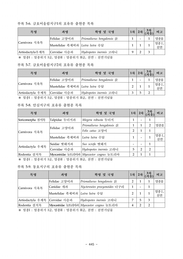 제목 : DMZ 일원 생태계 조사 : 민통선이북지역 중부산악권역