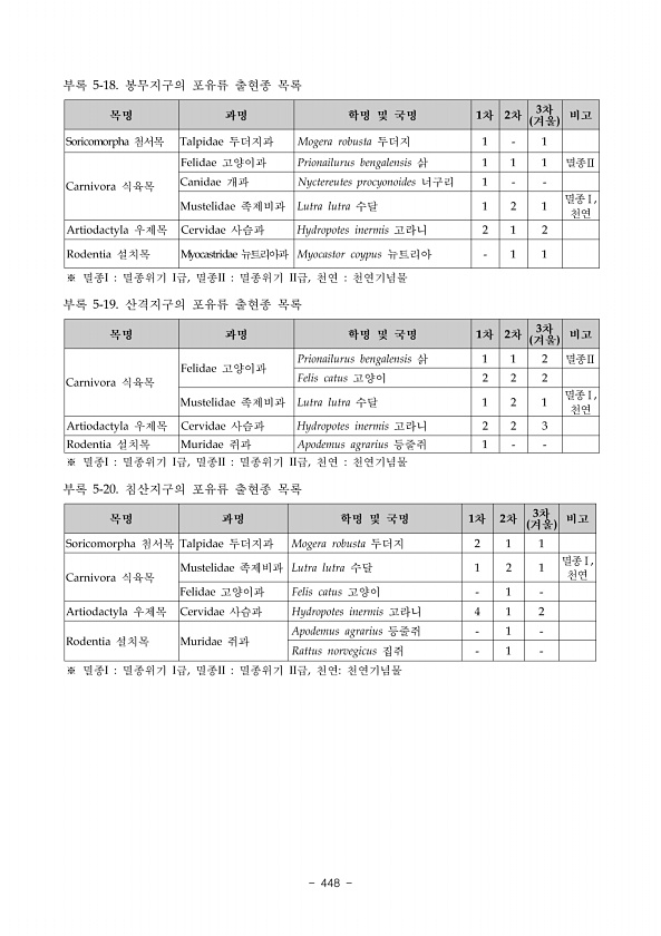 제목 : DMZ 일원 생태계 조사 : 민통선이북지역 중부산악권역